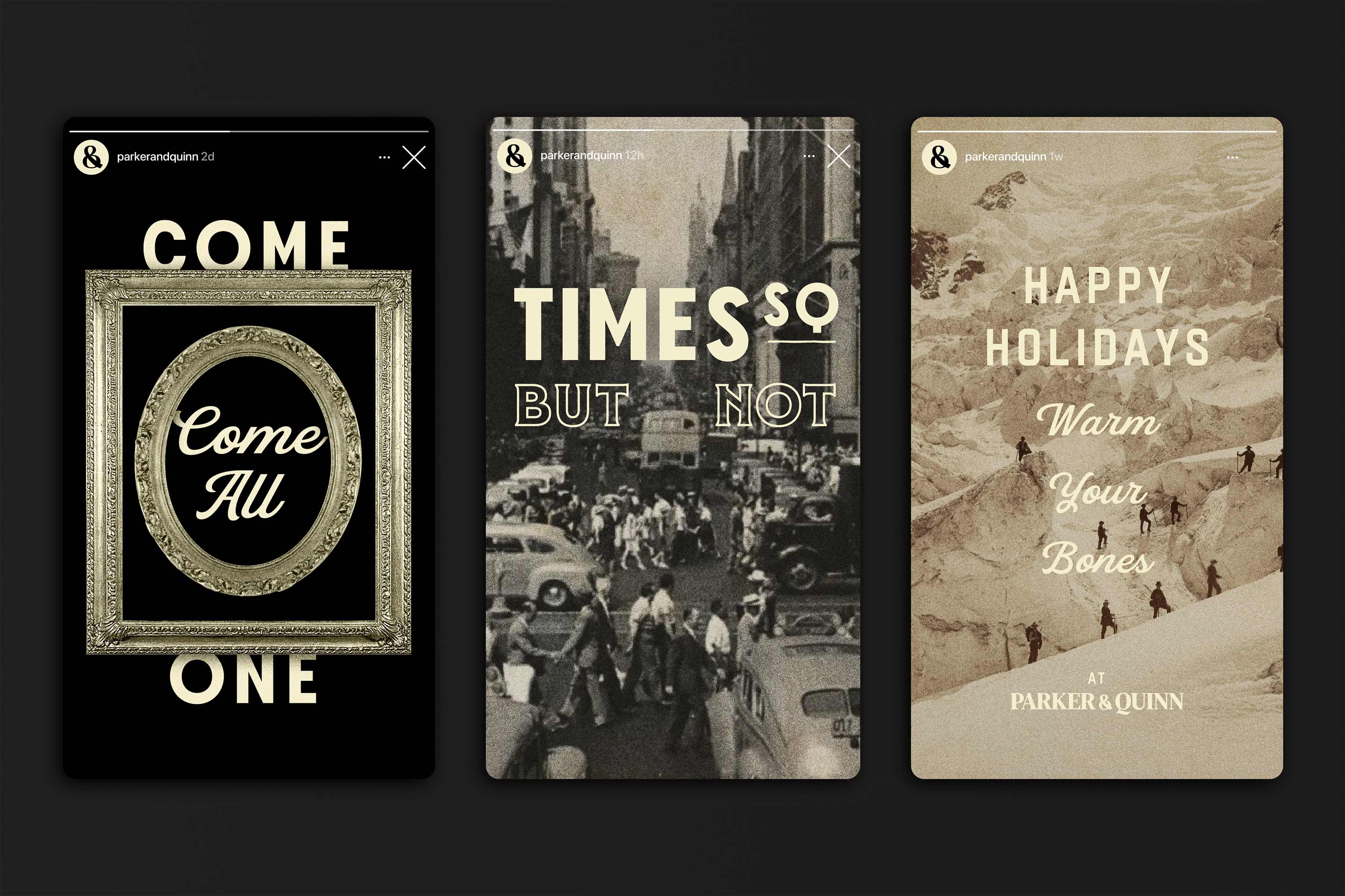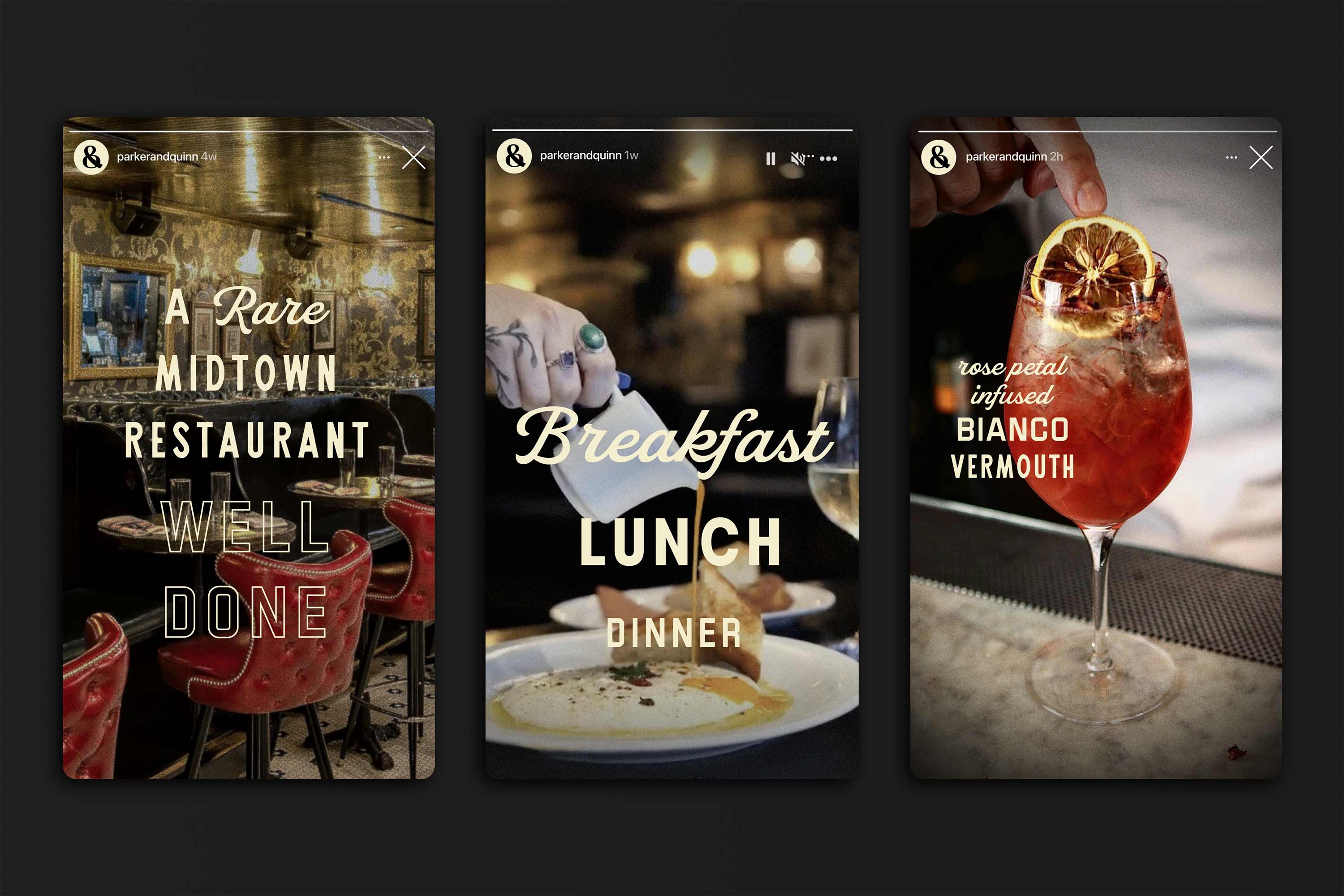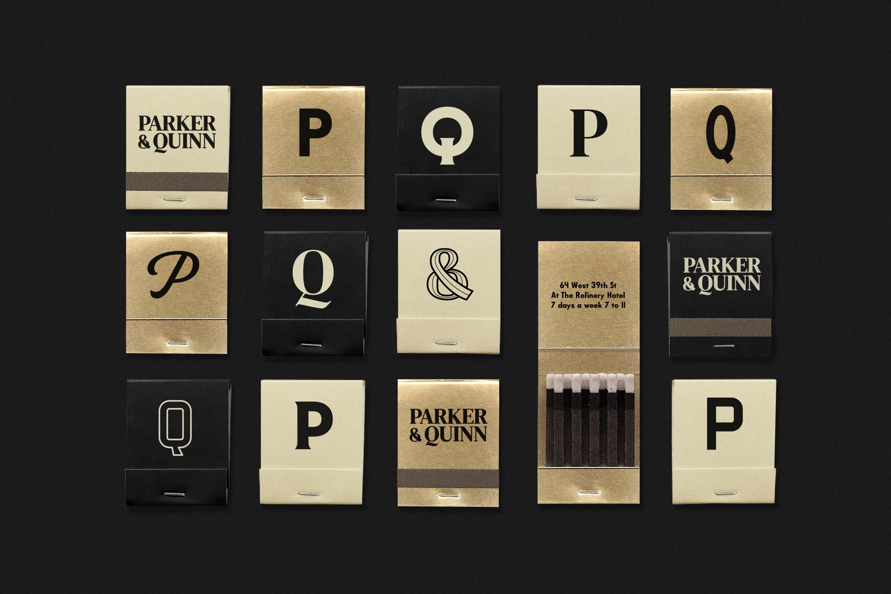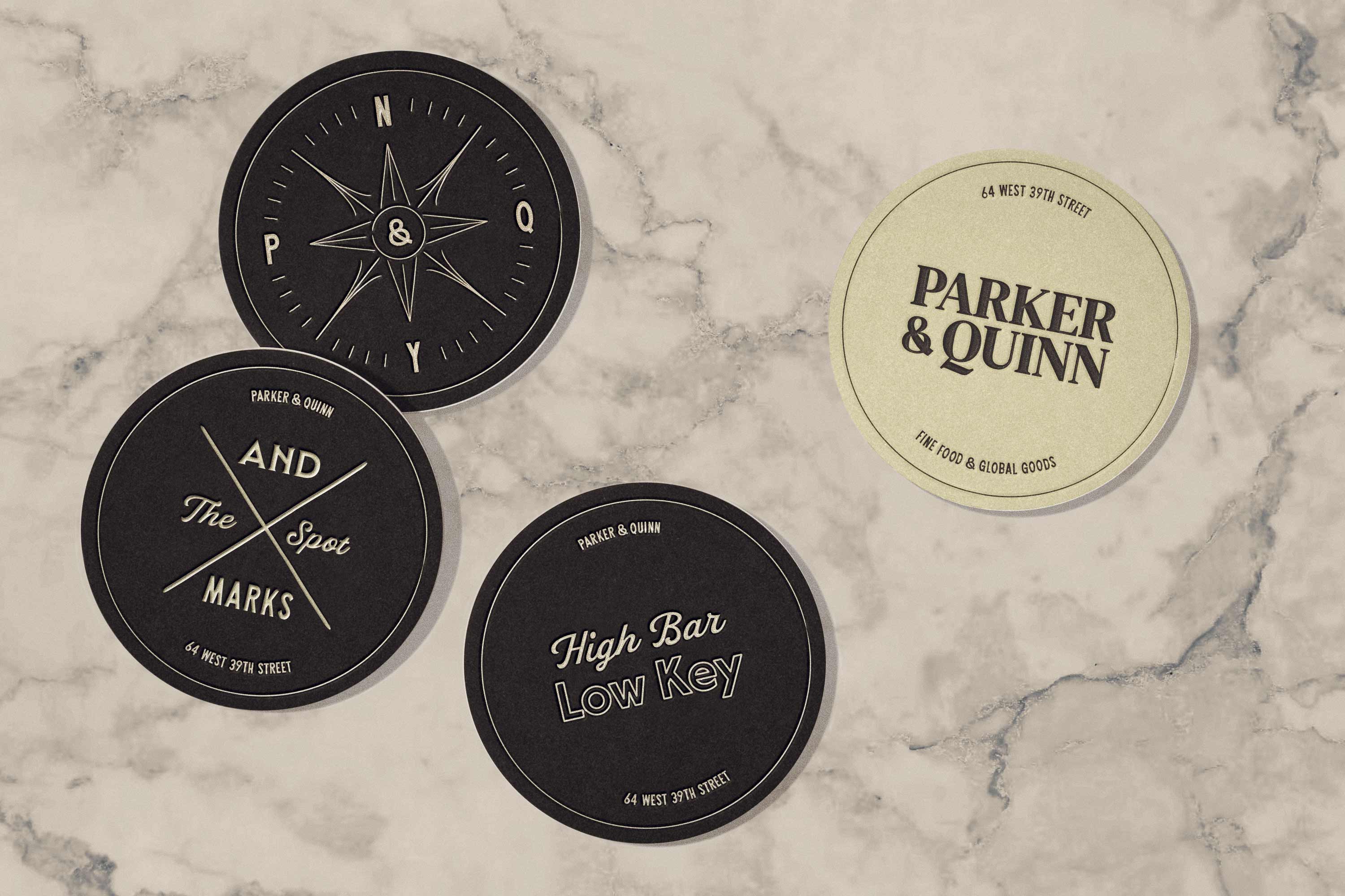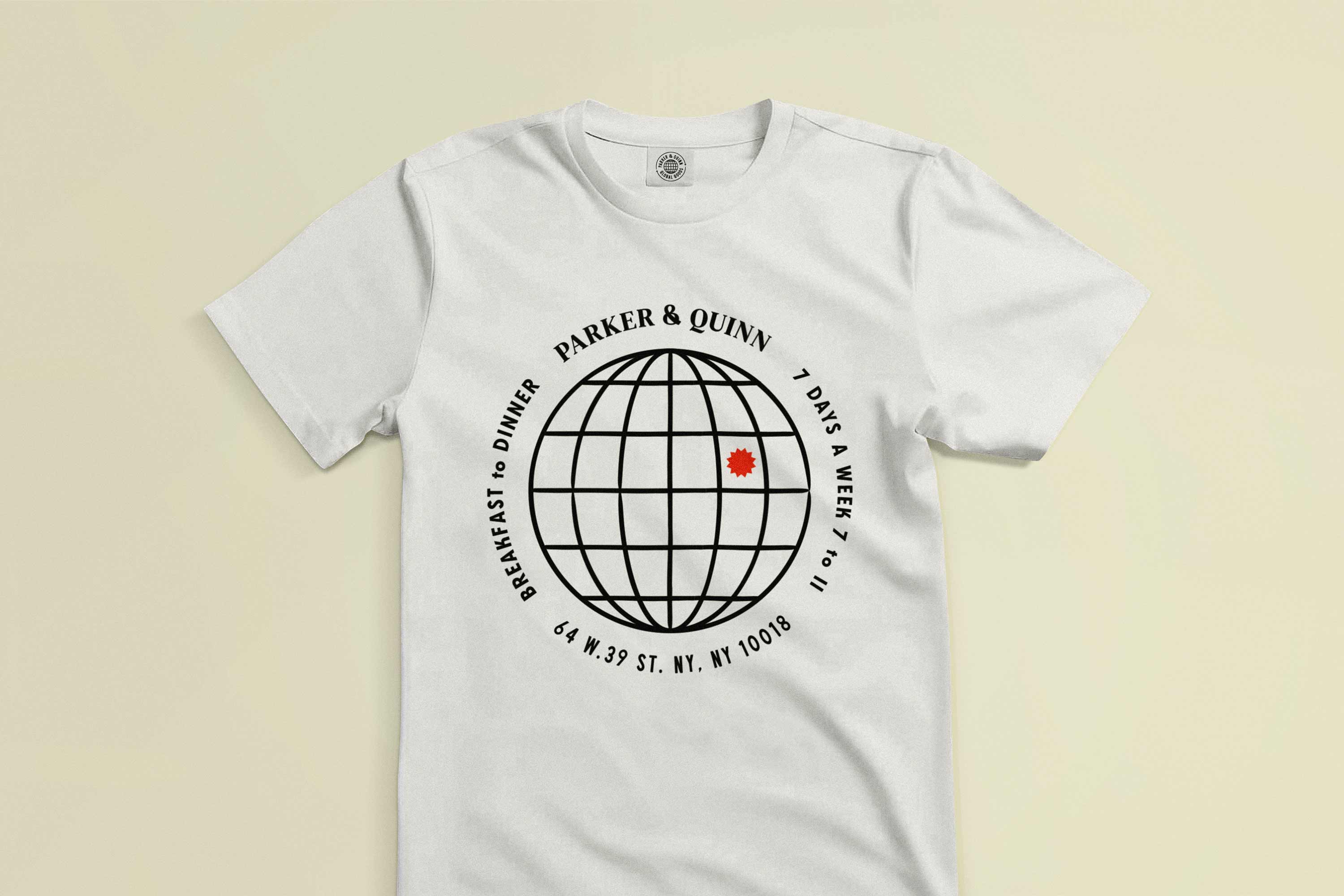 A custom ampersand, an exuberant family of typefaces, pictures of the past, and a zeal for the moment together create an expression of eclectic Midtown and its wide import and export of products, people, and charm. The logo frame brings the two names and distinct shapes together as one, to flexibly represent the restaurant across all communications. In addition, we invented the brand’s new sub-label, Parker & Quinn Global Goods, built for products, wares, and merchandise that capture their love for food, people, and discovery.